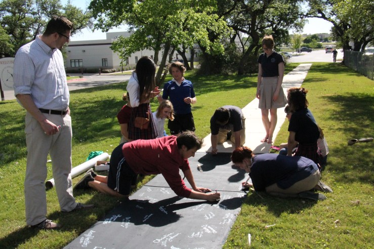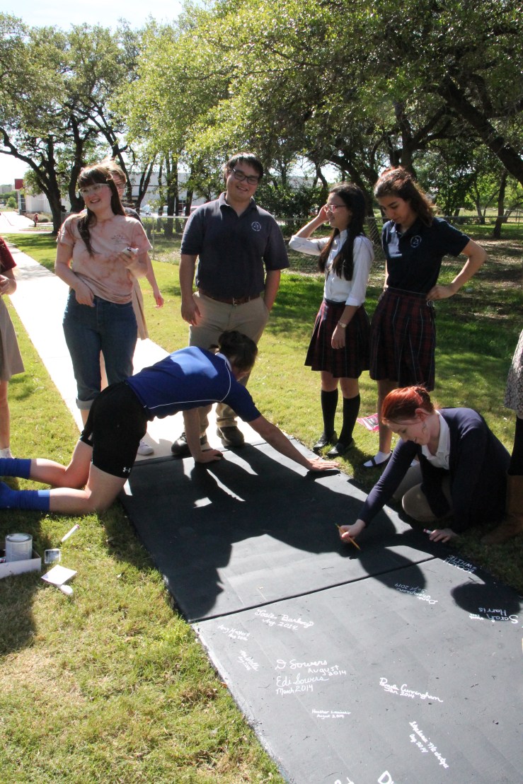 One of the best parts of working at a new school is starting traditions that can carry us well into the future. One of my favorite new Founders traditions is the senior sidewalk. The walkway that goes along the side of Sherwood Forest has enough space for all of our current students to write their names and a message to the Founders students who will come after them.