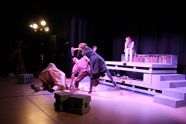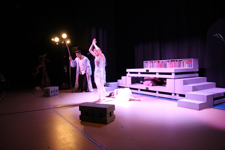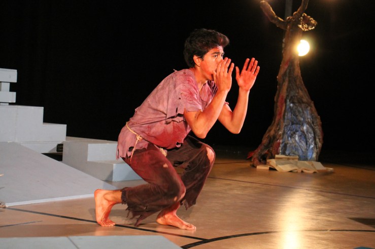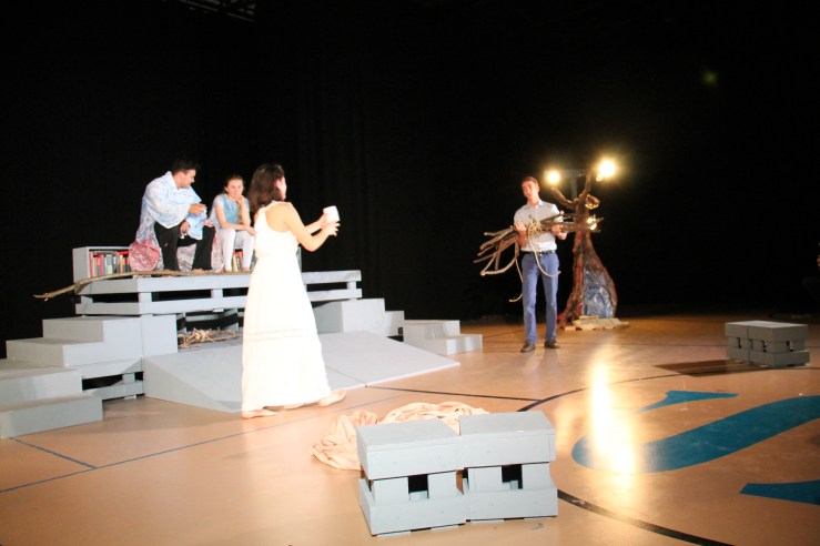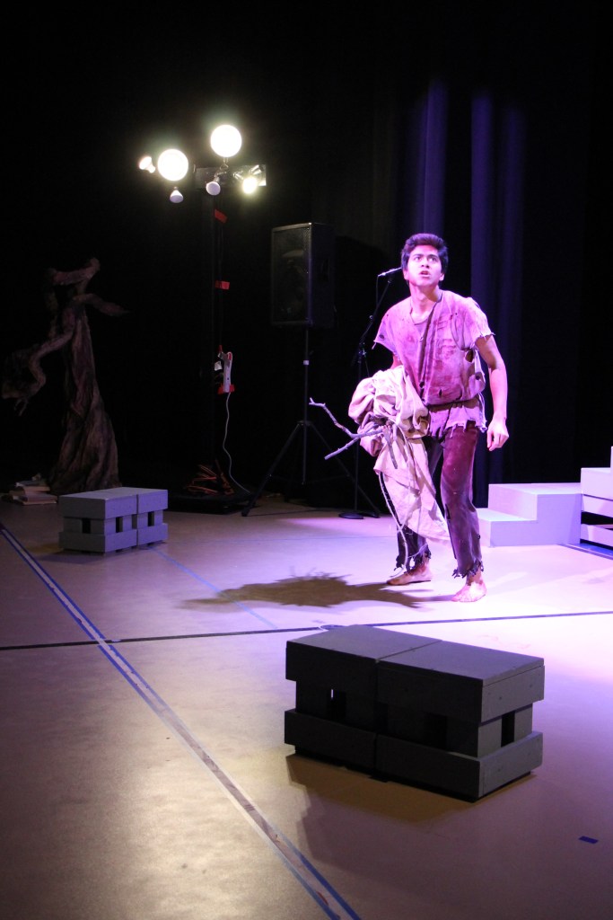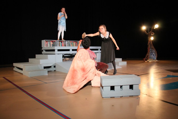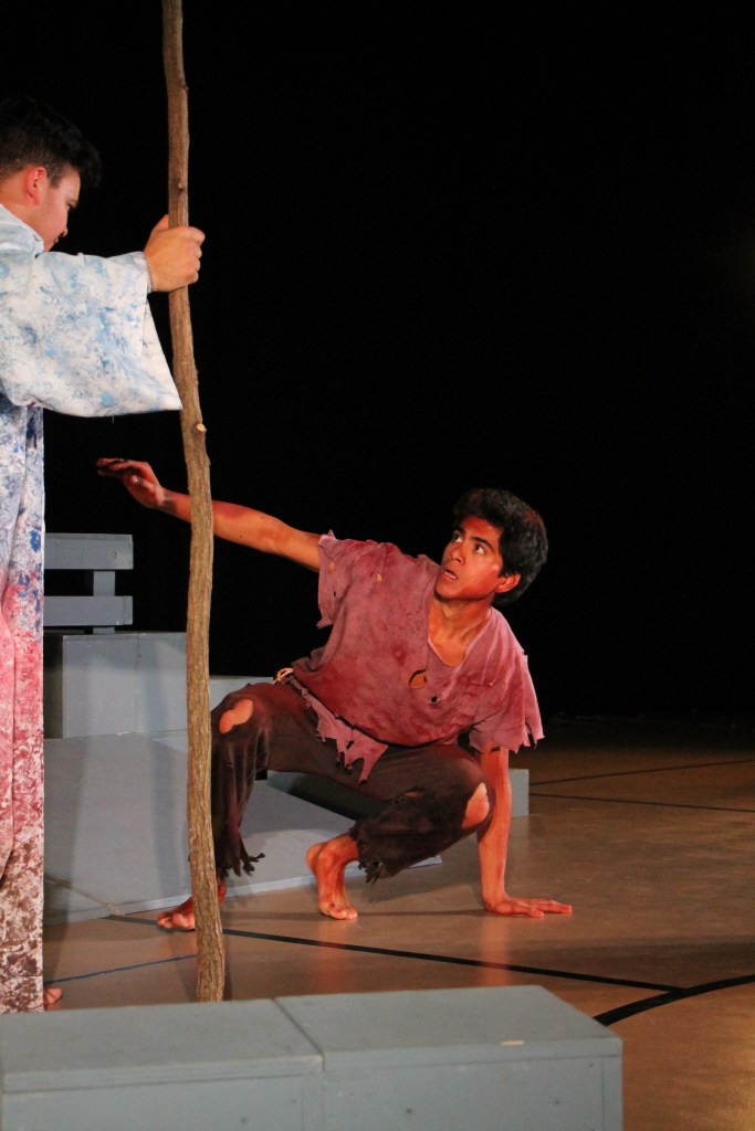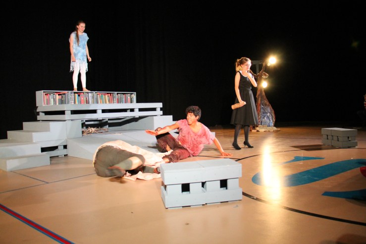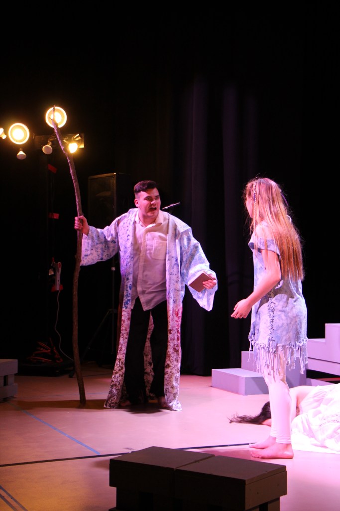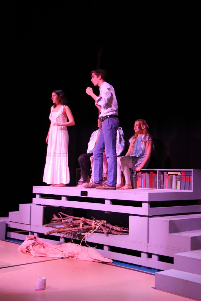 From left to right: Anne S. as Stephano, Christine J. as Trinculo, Michael P. as Caliban, and Olivia H. as Ariel.