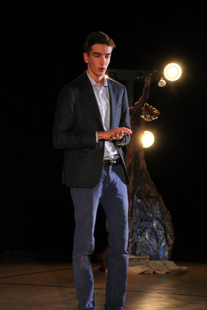 I’ve been watching the play during rehearsals, and mentioned already how difficult it is for high school students to put on such a challenging play. I was so impressed by the quality of the students’ performances, and the judges were too. Please join me in congratulating the following students for winning our school’s first-ever theater awards.