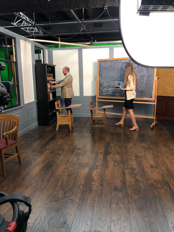 This week we are filming a series of videos for schools to use during teacher orientation in just a few weeks. Did you know that in the basement of one of the buildings here there is an entire studio, full of props and filming equipment? I thought you’d enjoy a look behind the scenes.
