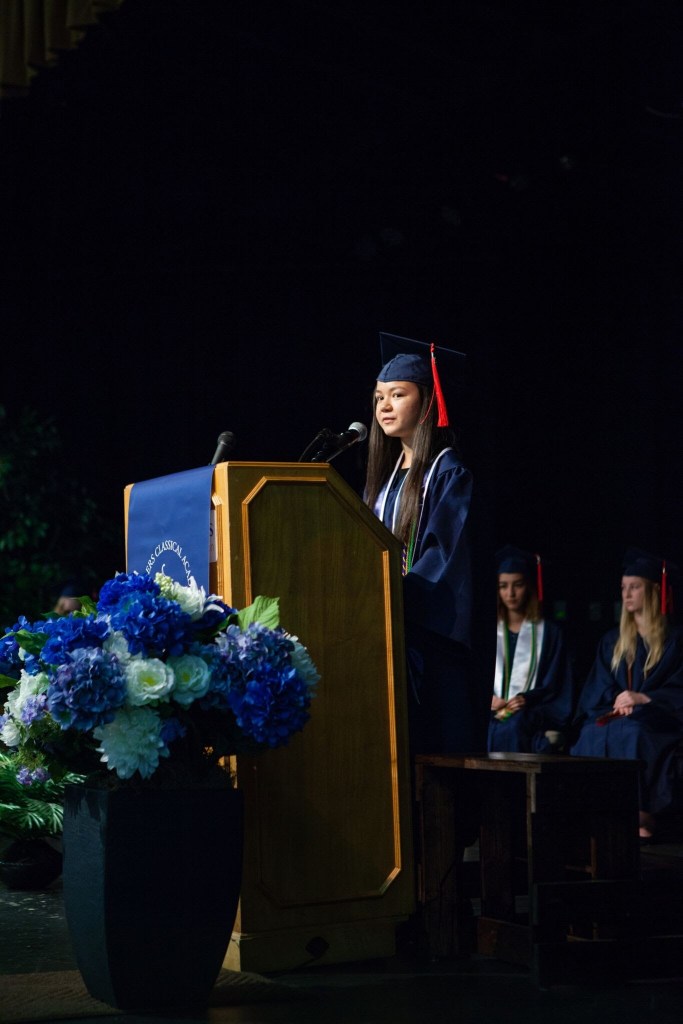 Natasha De Virgilio delivers the valedictory address to the Class of 2017.