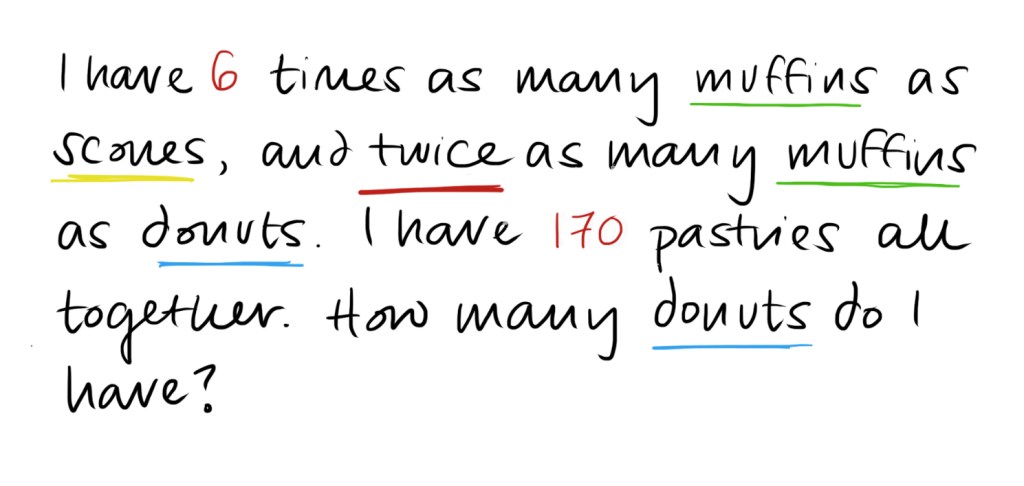 “I have 6 times as many muffins as scones”