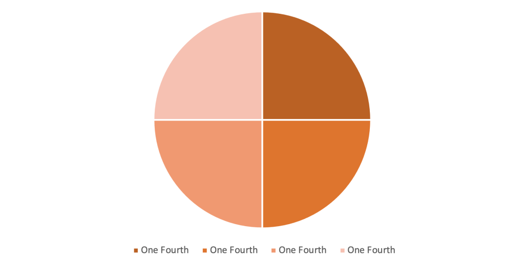 One last image. This time we baked a class pie. Students decided it should be a pumpkin pie. Yum. So, I passed out a circular piece of paper. Students had to fold it into four equal parts and label each one.