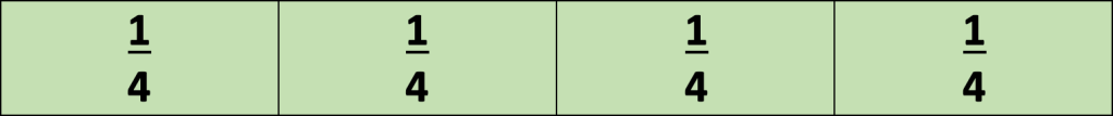 After we had seen two equal parts, we folded each side in half again. We wrote the fraction on each part. This is what it looked like.